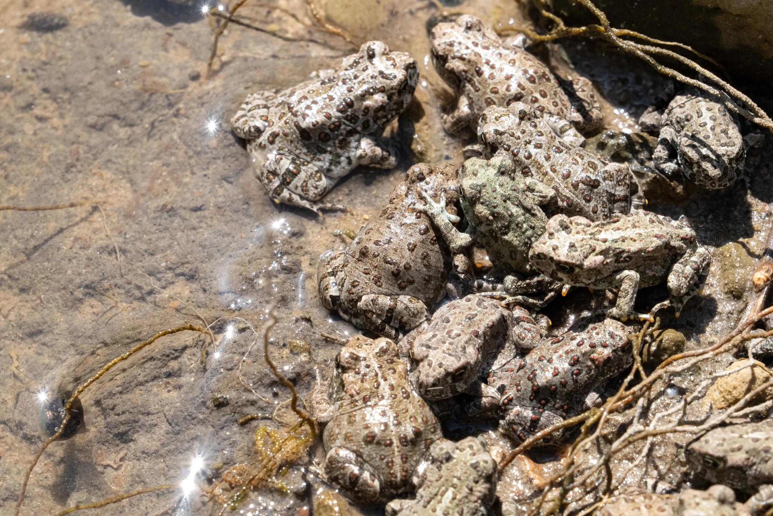As a student in Earth Systems at Stanford University and a conservation technician with the Stanford Conservation Program, I spent a lot of time monitoring amphibian populations in our creeks, small ponds, and Lagunita- a large ephemeral wetland. After years of drought, tens of thousands of toadlets emerged in the area surrounding Lagunita, which was full for the first time in decades. One day, as I walked along the paved path around the lake, I noticed–to my horror–that the innumerable black smudges scattered about the southern half of the trail were juvenile frogs and toads that had been squashed underfoot.